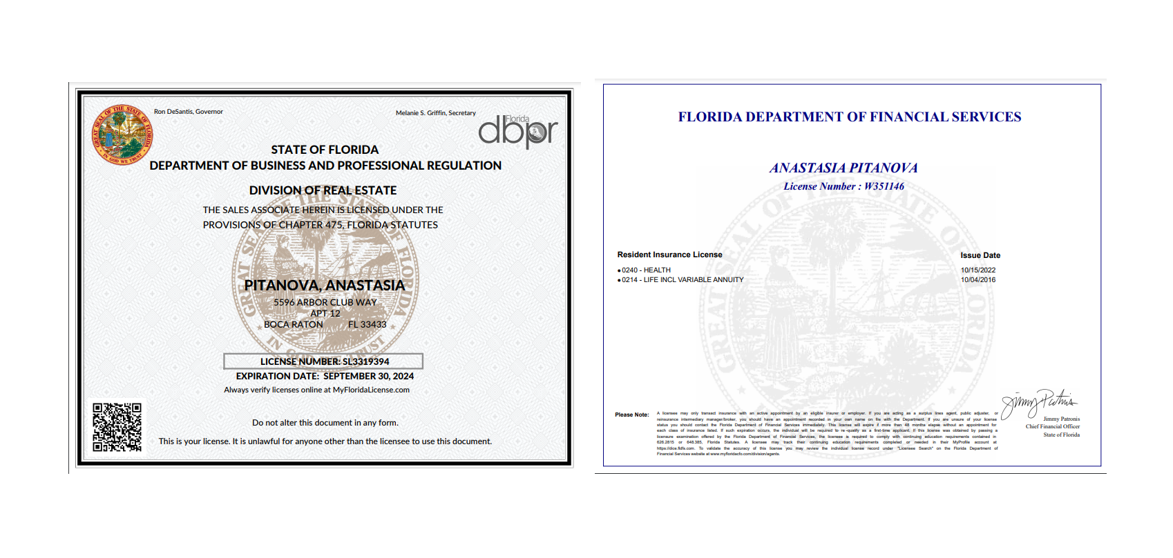 Имею лицензию, которая дает право продажи недвижимости штата Флориды.